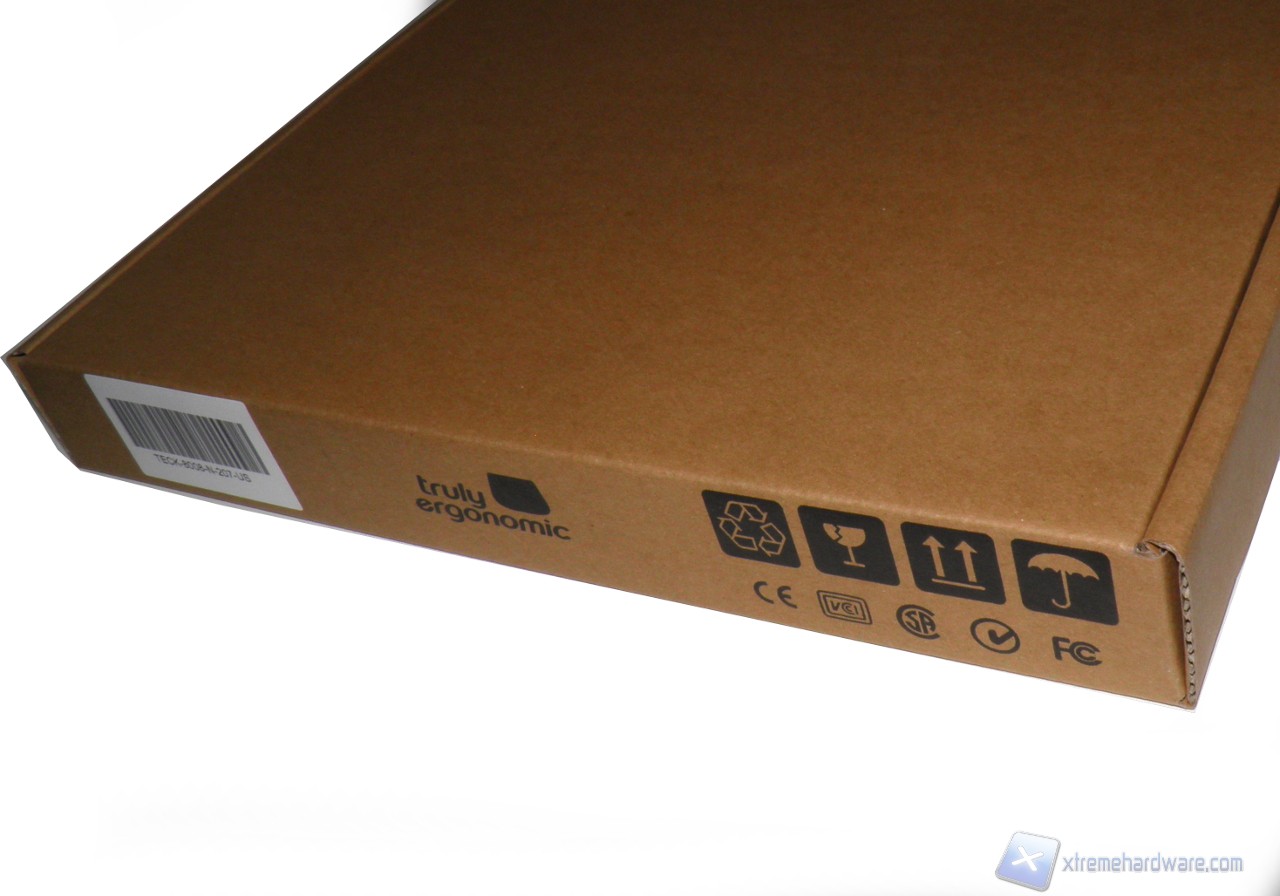 La confezione con cui ci arriva la Truly Ergonomic è decisamente minimal. Realizzata in cartone avana, le uniche informazioni riportate sono relative al marchio del produttore e al modello espresso sotto forma di codice a barre.